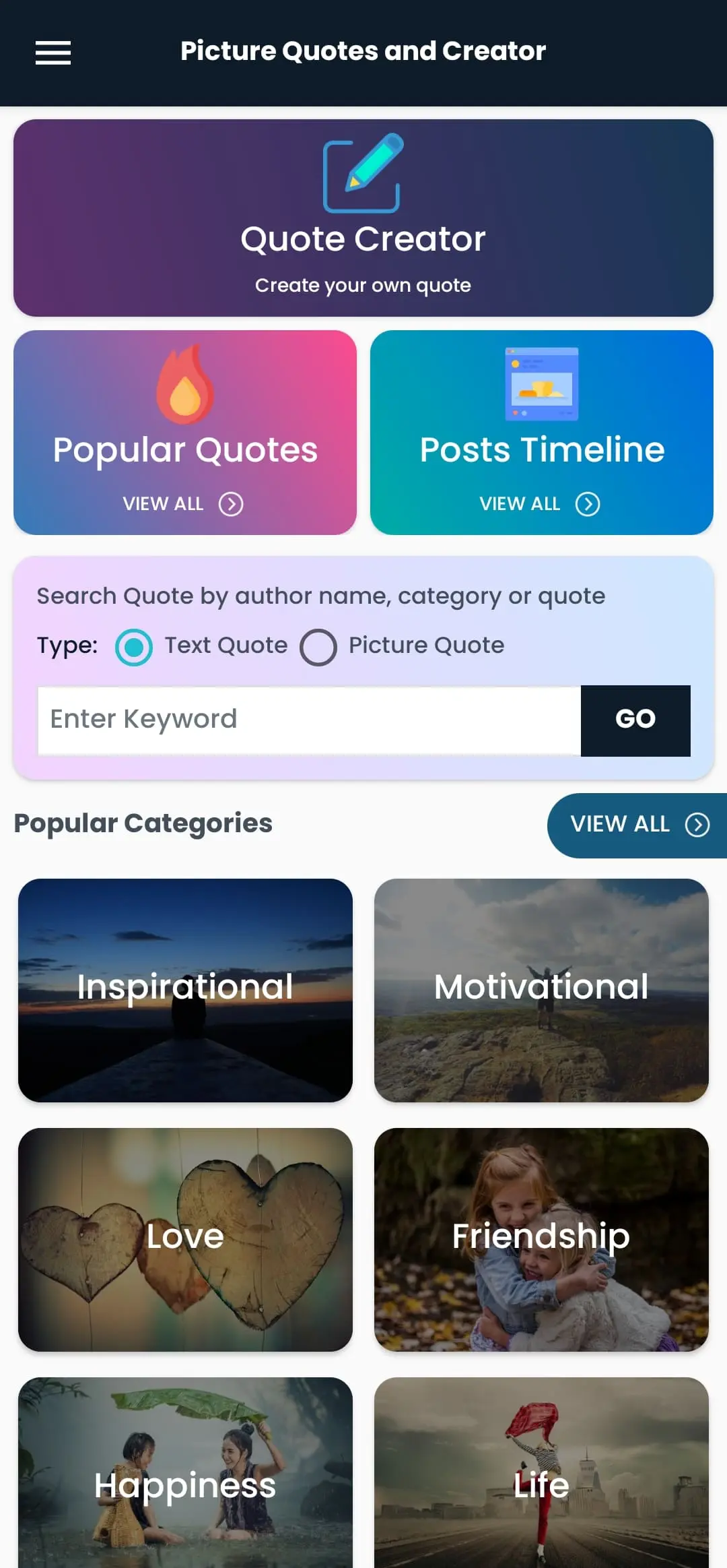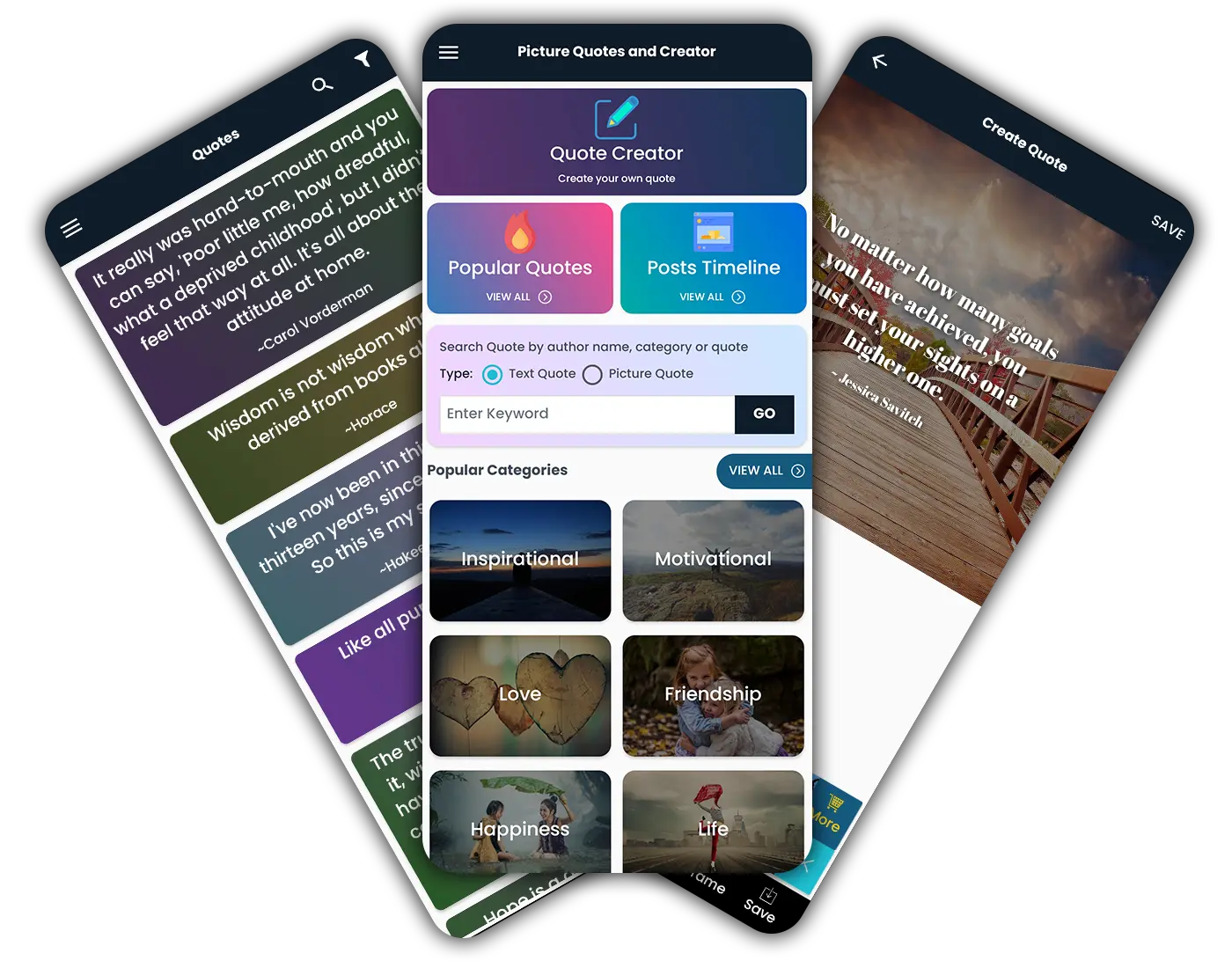 Share your creativity with friends and family and enjoy the features of Picture Quotes - Quote Creator.