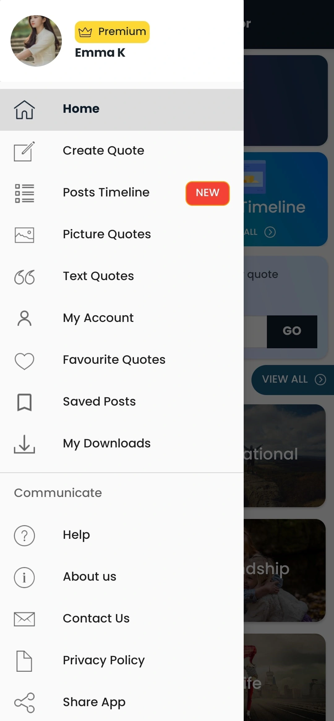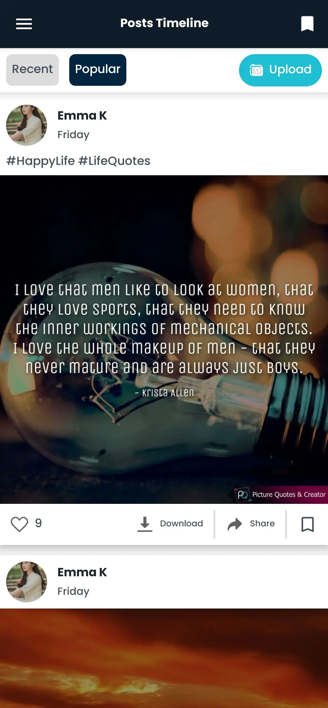 Engage with our community by exploring the Post Timeline, where users share their created quotes.